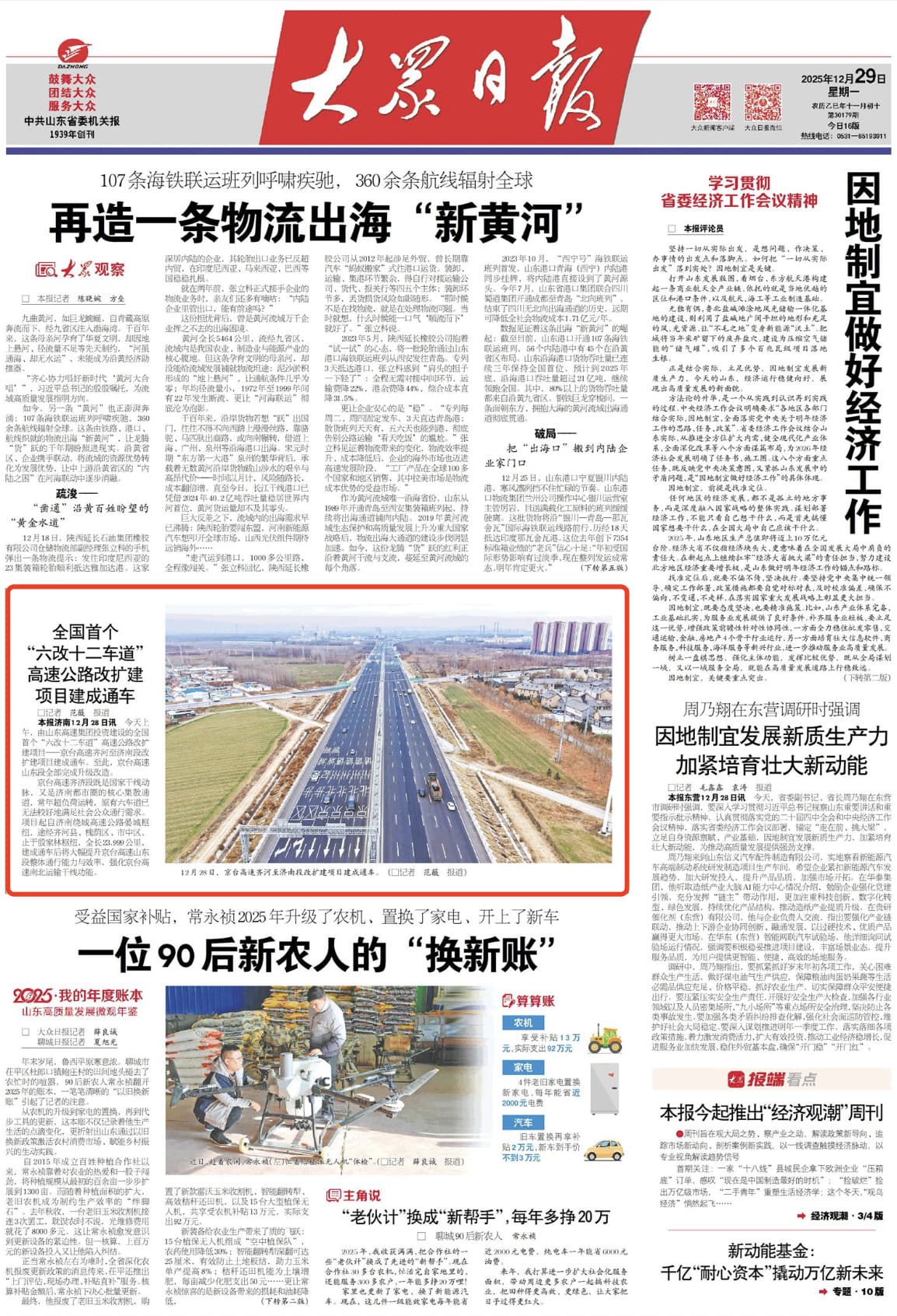 【大众日报头版】全国首个“六改十二车道”高速公路改扩建项目建成通车